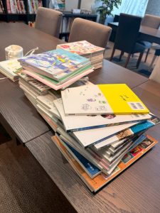 今日は1年間お世話になった古い教科書の廃棄作業をしています。